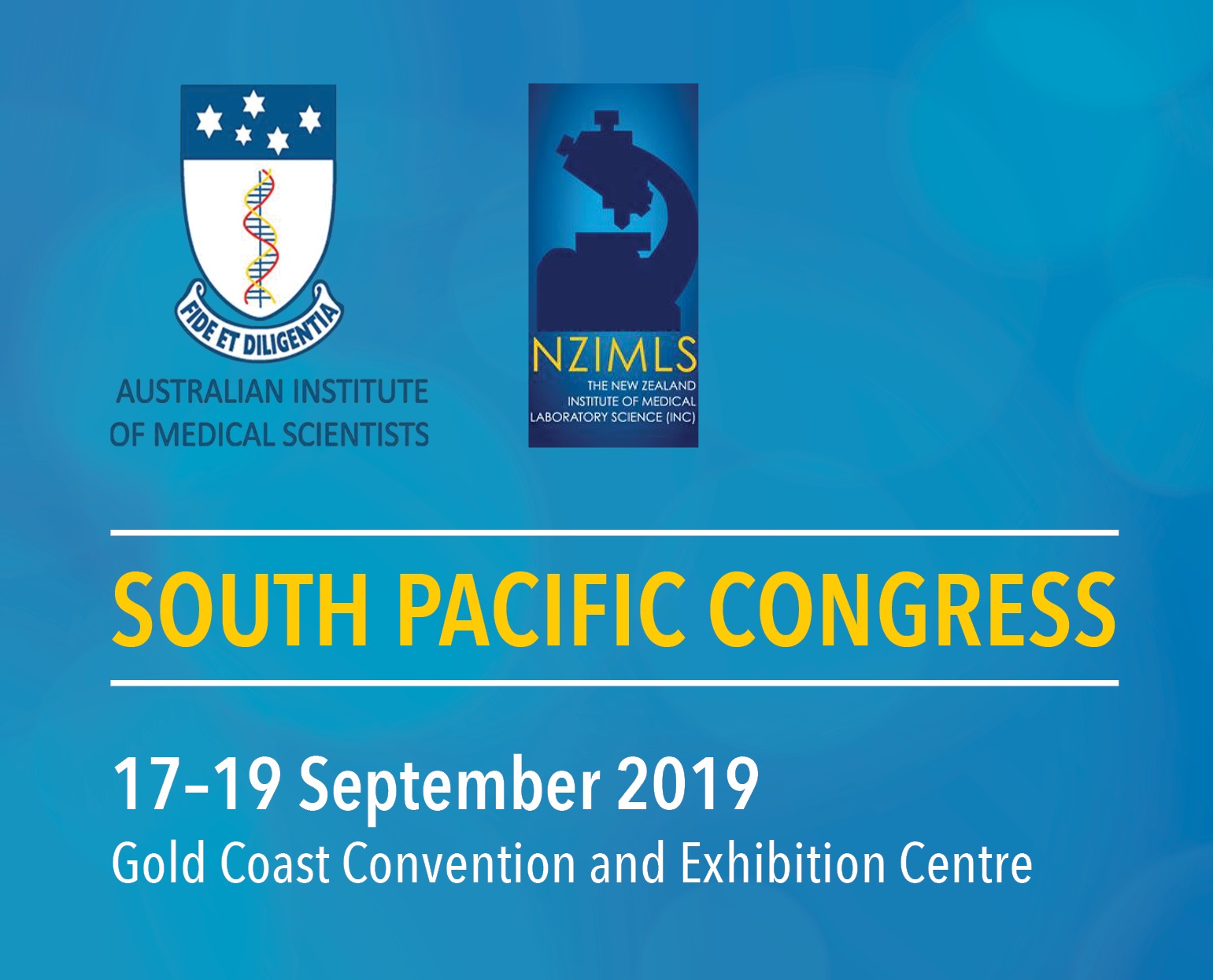 The Australian Institute of Medical Scientists (AIMS) and the New Zealand Institute of Medical Laboratory Scientists (NZIMLS) are pleased to present their combined meeting, the South Pacific Congress (SPC), to be held at Gold Coast Convention and Exhibition Centre, 17-19 September 2019.